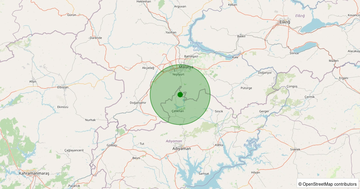 Son 7 gün içinde Çelikhan - Çampınar Köyü noktasından 100 km yarıçap içerisinde meydana gelen diğer depremler: