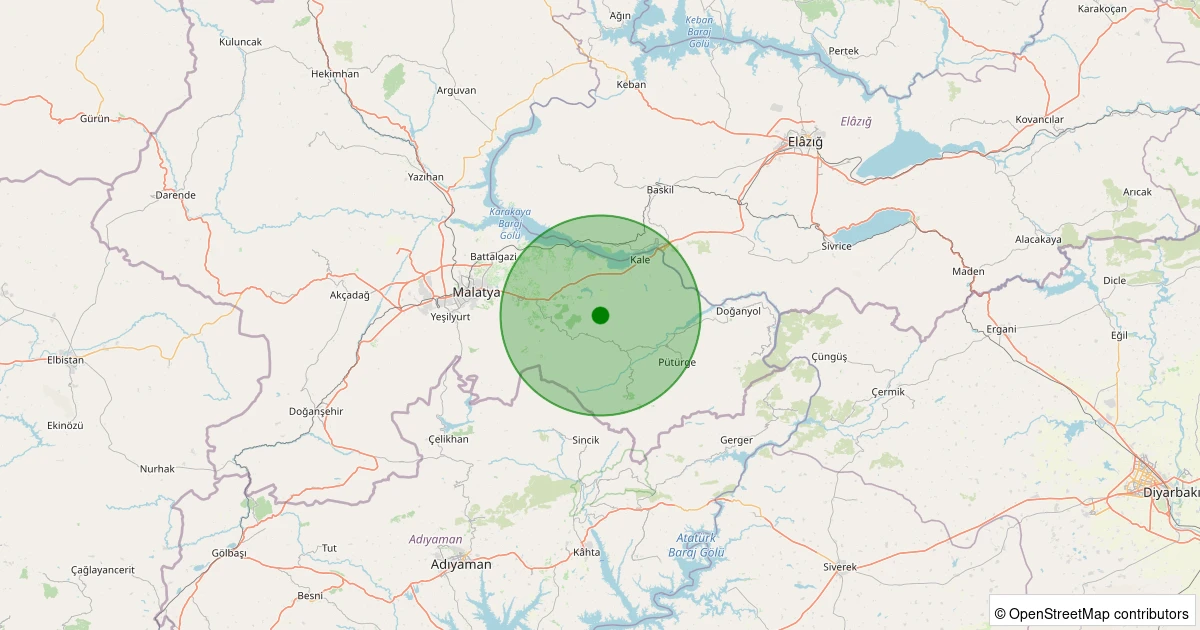 Son 7 gün içinde Battalgazi - Kamıştaş Köyü noktasından 100 km yarıçap içerisinde meydana gelen diğer depremler: