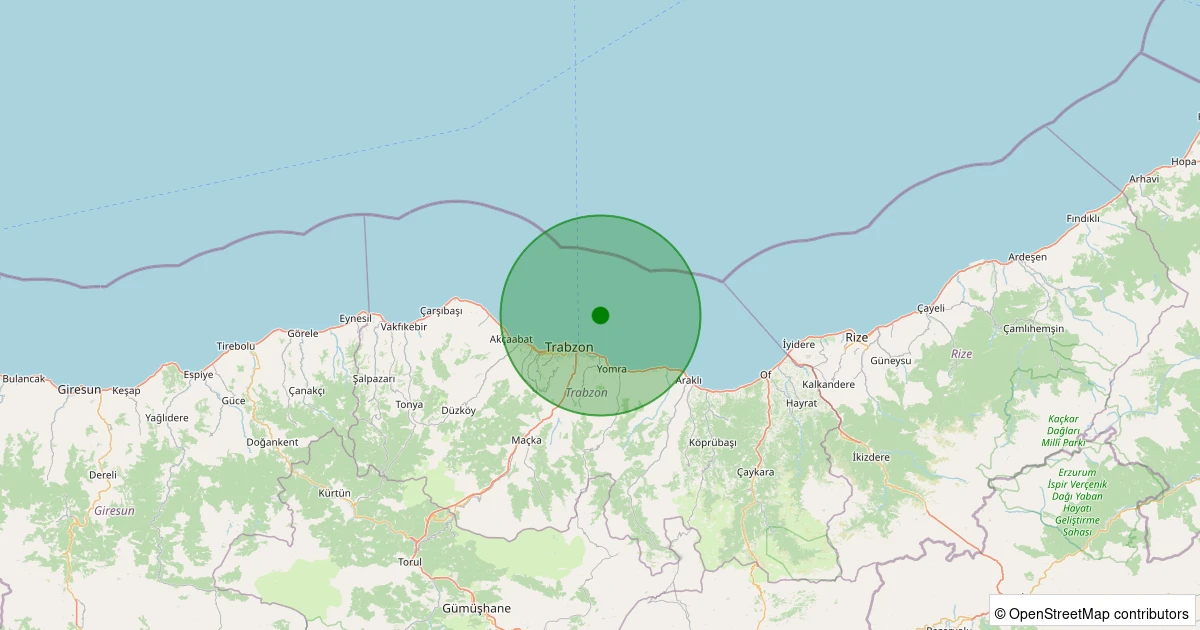 Son bir hafta içerisinde Karadeniz - [09.81 km] Ortahisar (Trabzon) noktasından 100 km yarıçap içerisinde toplamda 13 deprem kaydedilmiştir. Bu depremlerden en büyüğü 3.8 büyüklüğünde ve en sığ odaklısı 6.90 kilometre derinlikte gerçekleşmiştir.