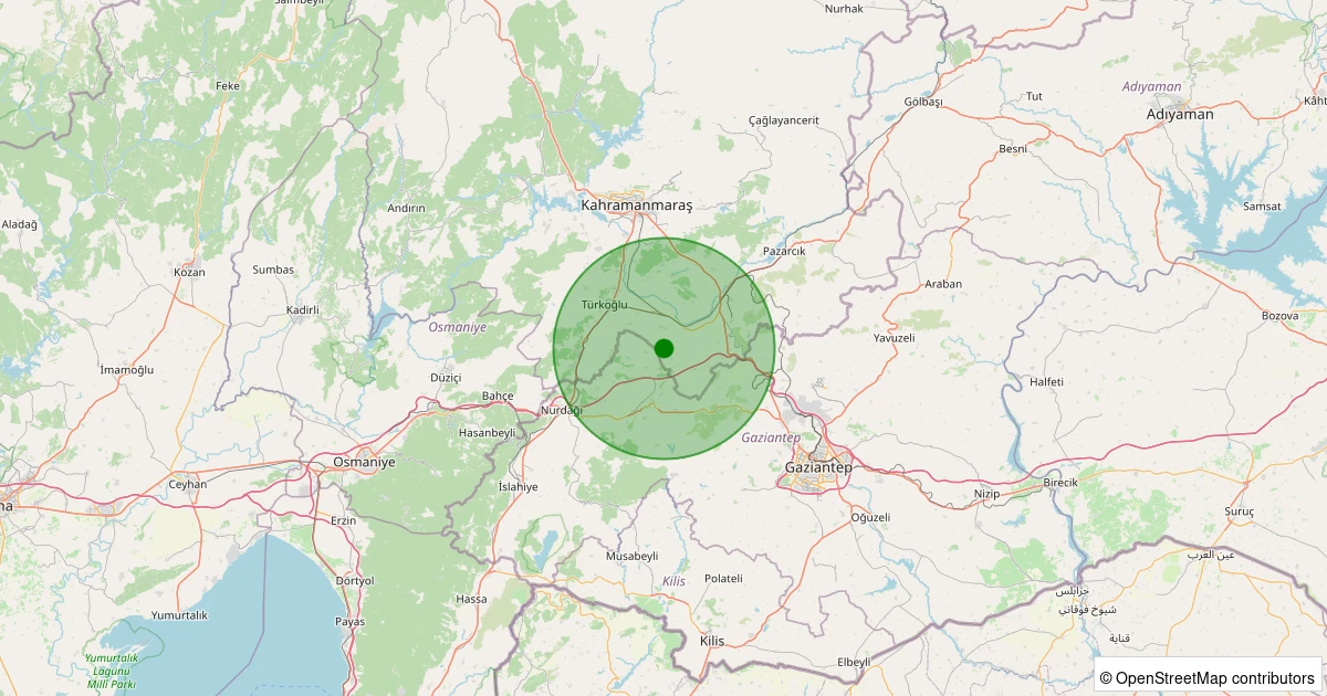 Son 7 gün içinde Türkoğlu - Bayramgazi noktasından 100 km yarıçap içerisinde meydana gelen diğer depremler: