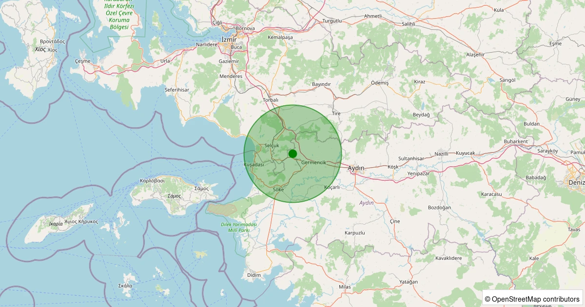 Son 7 gün içinde Germencik - Balatçık noktasından 100 km yarıçap içerisinde meydana gelen diğer depremler: