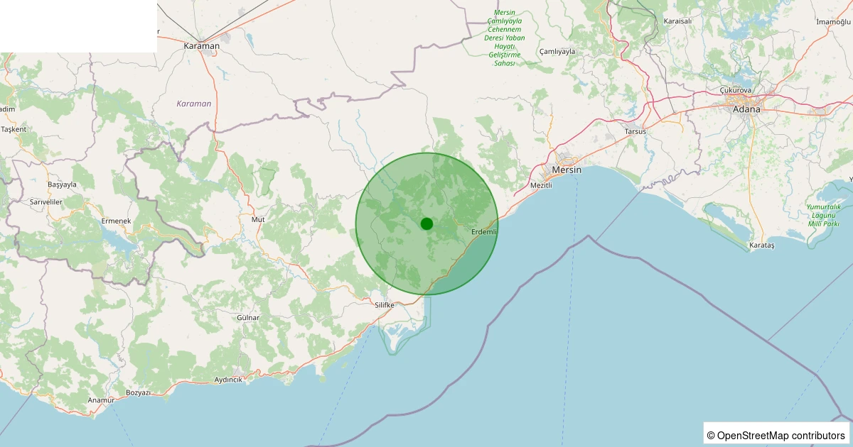 Son 7 gün içinde Erdemli - Küstüllü noktasından 100 km yarıçap içerisinde meydana gelen diğer depremler: