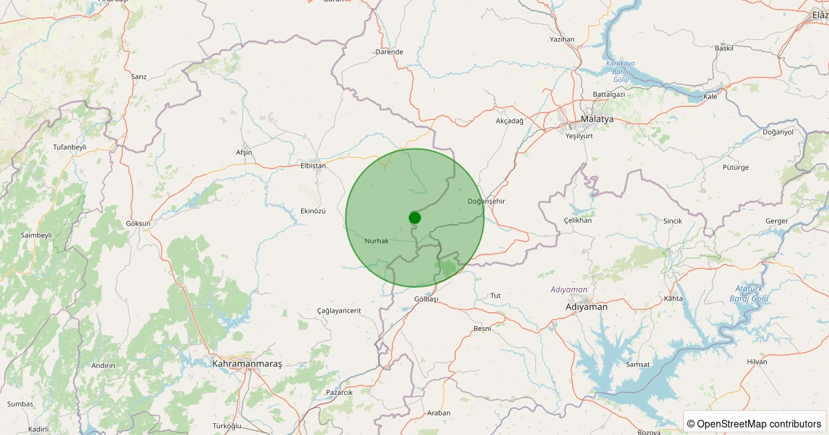 Son 7 gün içinde Doğanşehir - Gövdeli noktasından 100 km yarıçap içerisinde meydana gelen diğer depremler: