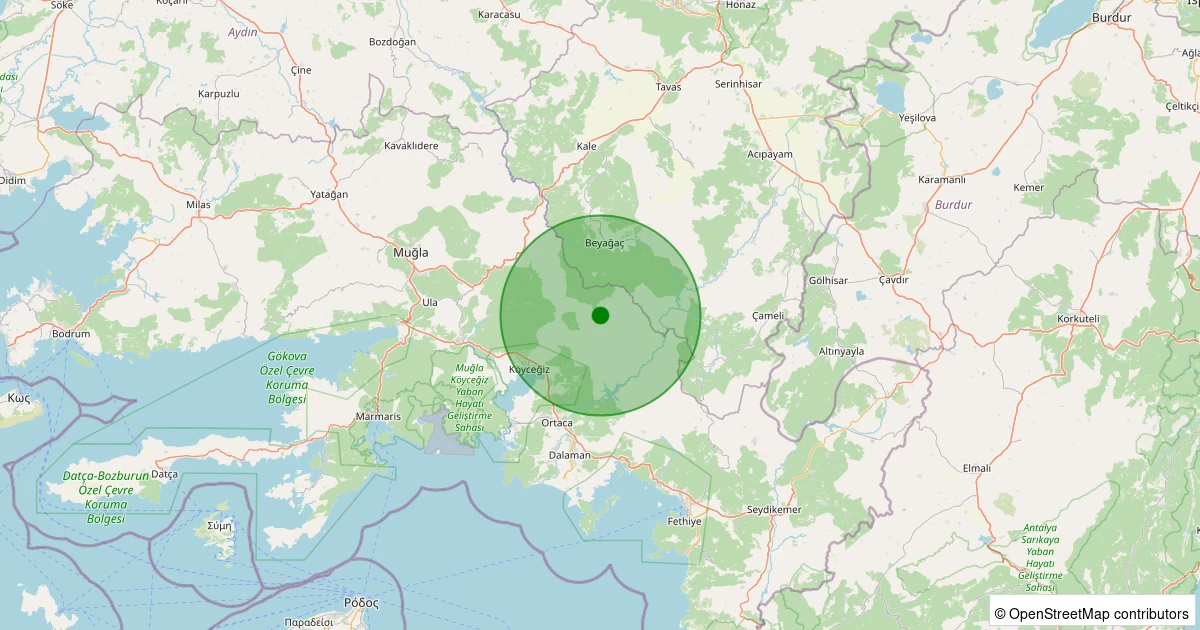 Son 7 gün içinde Köyceğiz - Otmanlar noktasından 100 km yarıçap içerisinde meydana gelen diğer depremler: