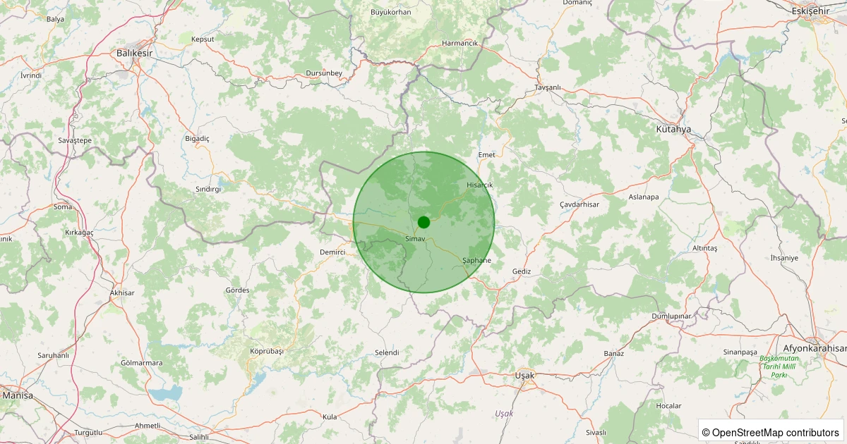 Son 7 gün içinde Simav - Hüsüm noktasından 100 km yarıçap içerisinde meydana gelen diğer depremler: