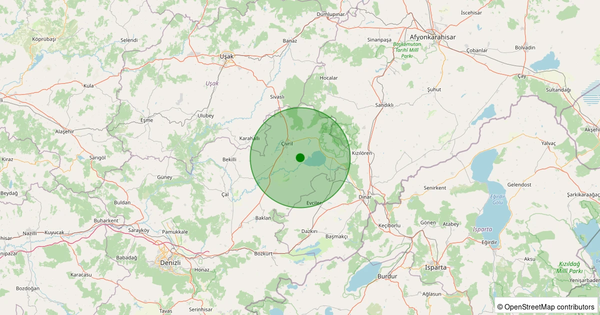 Son 7 gün içinde Çivril - Karamanlı Köyü noktasından 100 km yarıçap içerisinde meydana gelen diğer depremler:
