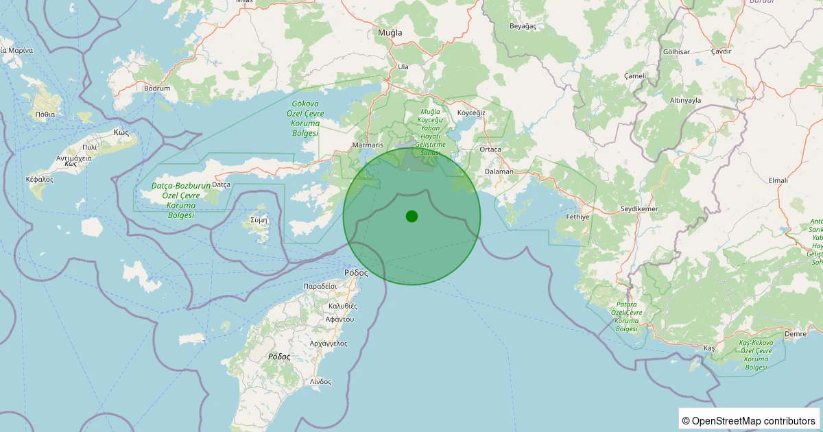Son bir hafta içerisinde Akdeniz - [24.65 km] Marmaris (Muğla) noktasından 100 km yarıçap içerisinde toplamda 49 deprem kaydedilmiştir. Bu depremlerden en büyüğü 2.8 büyüklüğünde ve en sığ odaklısı 1.40 kilometre derinlikte gerçekleşmiştir.