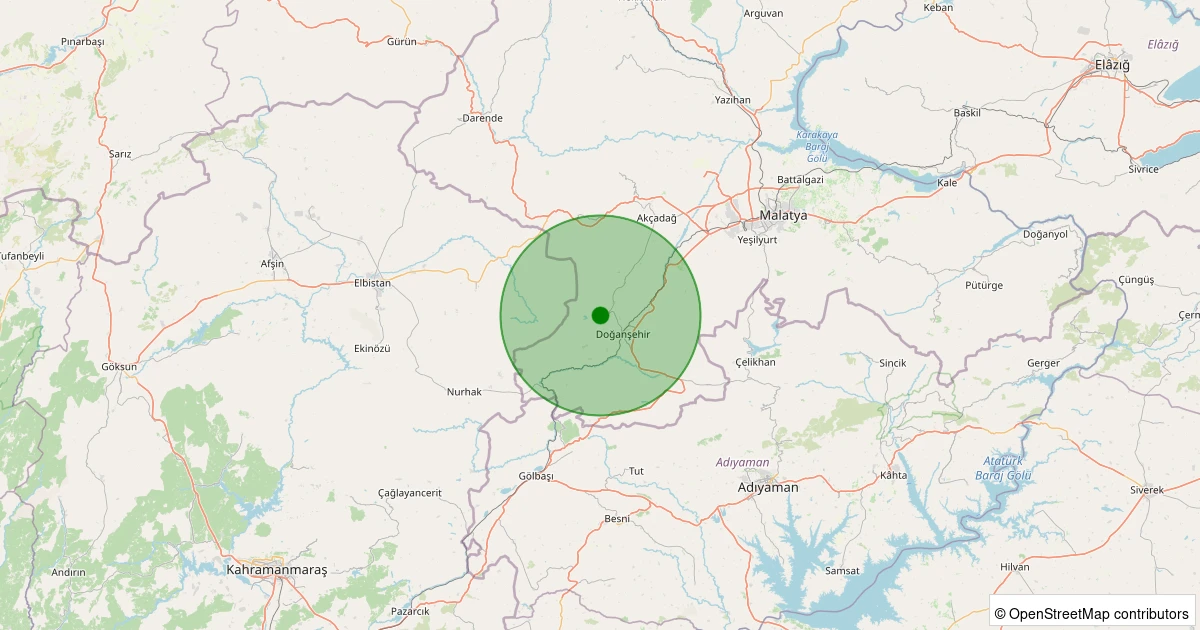 Son 7 gün içinde Doğanşehir - Fındık noktasından 100 km yarıçap içerisinde meydana gelen diğer depremler: