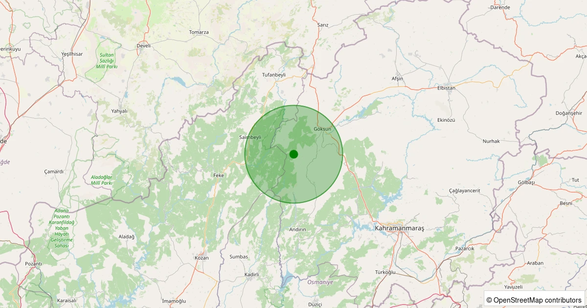 Son 7 gün içinde Göksun - Hacıkodal noktasından 100 km yarıçap içerisinde meydana gelen diğer depremler: