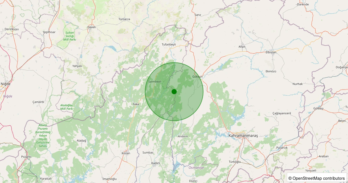 Son 7 gün içinde Saimbeyli - Aksaağaç noktasından 100 km yarıçap içerisinde meydana gelen diğer depremler: