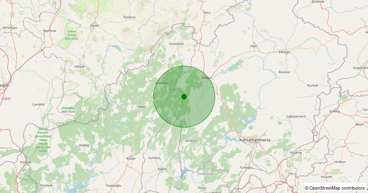 Son 7 gün içinde Göksun - Payamburnu noktasından 100 km yarıçap içerisinde meydana gelen diğer depremler: