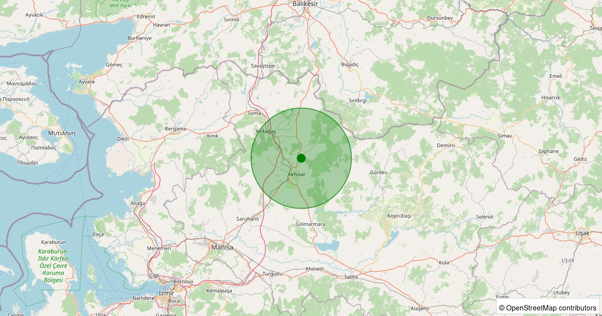 Son 7 gün içinde Akhisar - Dingiller Köyü noktasından 100 km yarıçap içerisinde meydana gelen diğer depremler: