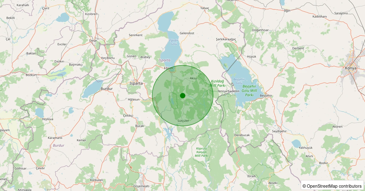Son 7 gün içinde Eğirdir - Sipahiler Köyü noktasından 100 km yarıçap içerisinde meydana gelen diğer depremler: