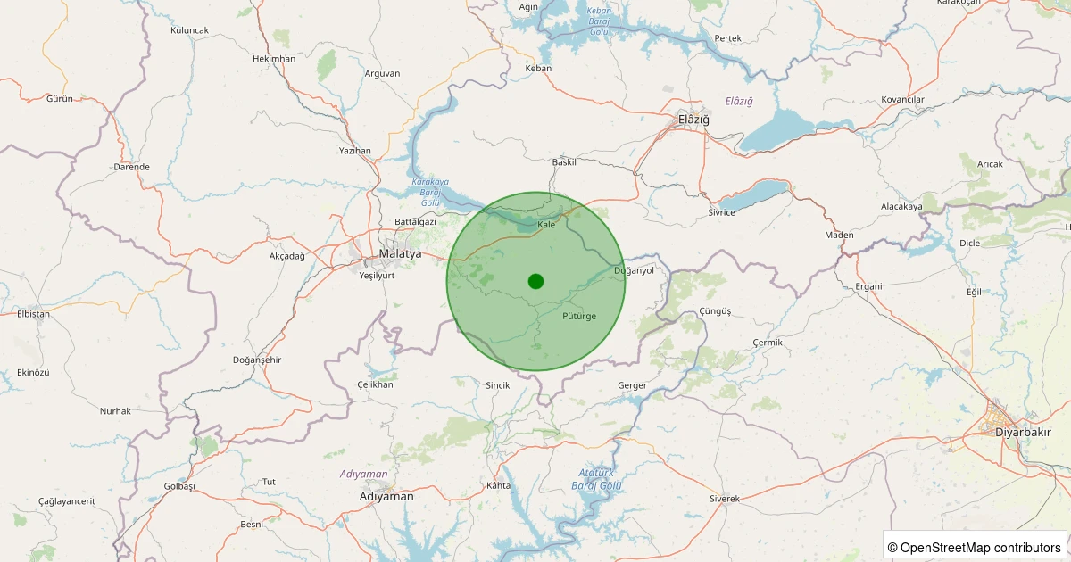 Son 7 gün içinde Pütürge - Pazarcık Köyü noktasından 100 km yarıçap içerisinde meydana gelen diğer depremler: