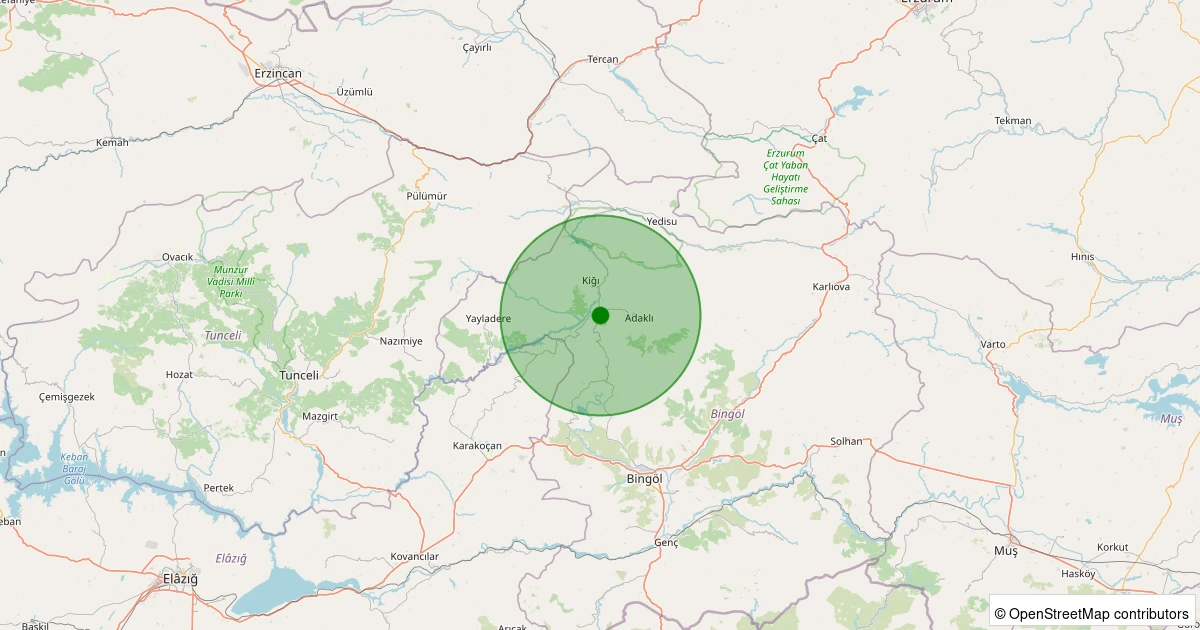 Son 7 gün içinde Adaklı - Bağlarpınarı Köyü noktasından 100 km yarıçap içerisinde meydana gelen diğer depremler: