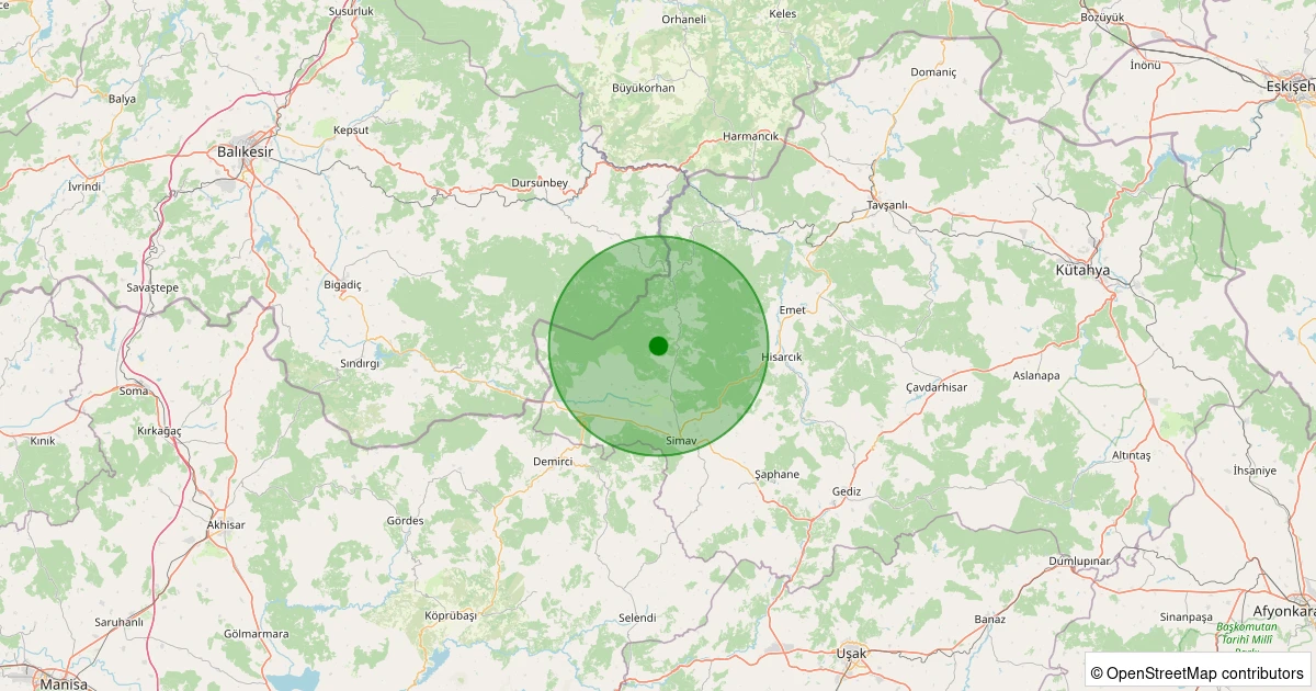 Son 7 gün içinde Simav - Karakoca Köyü noktasından 100 km yarıçap içerisinde meydana gelen diğer depremler: