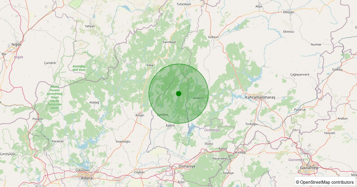 Son 7 gün içinde Kadirli - Kösepınarı Köyü noktasından 100 km yarıçap içerisinde meydana gelen diğer depremler:
