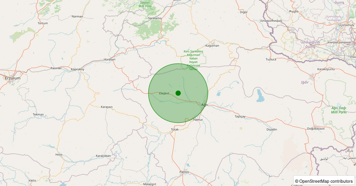 Son 7 gün içinde Eleşkirt - Değirmenoluğu Köyü noktasından 100 km yarıçap içerisinde meydana gelen diğer depremler: