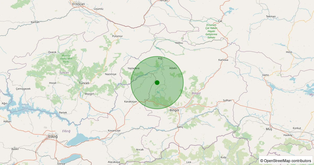 Son bir hafta içerisinde Bingöl şehri Merkez - Sütgölü Köyü noktasından 100 km yarıçap içerisinde toplamda 22 deprem kaydedilmiştir. Bu depremlerden en büyüğü 2.1 büyüklüğünde ve en sığ odaklısı 5.00 kilometre derinlikte gerçekleşmiştir.