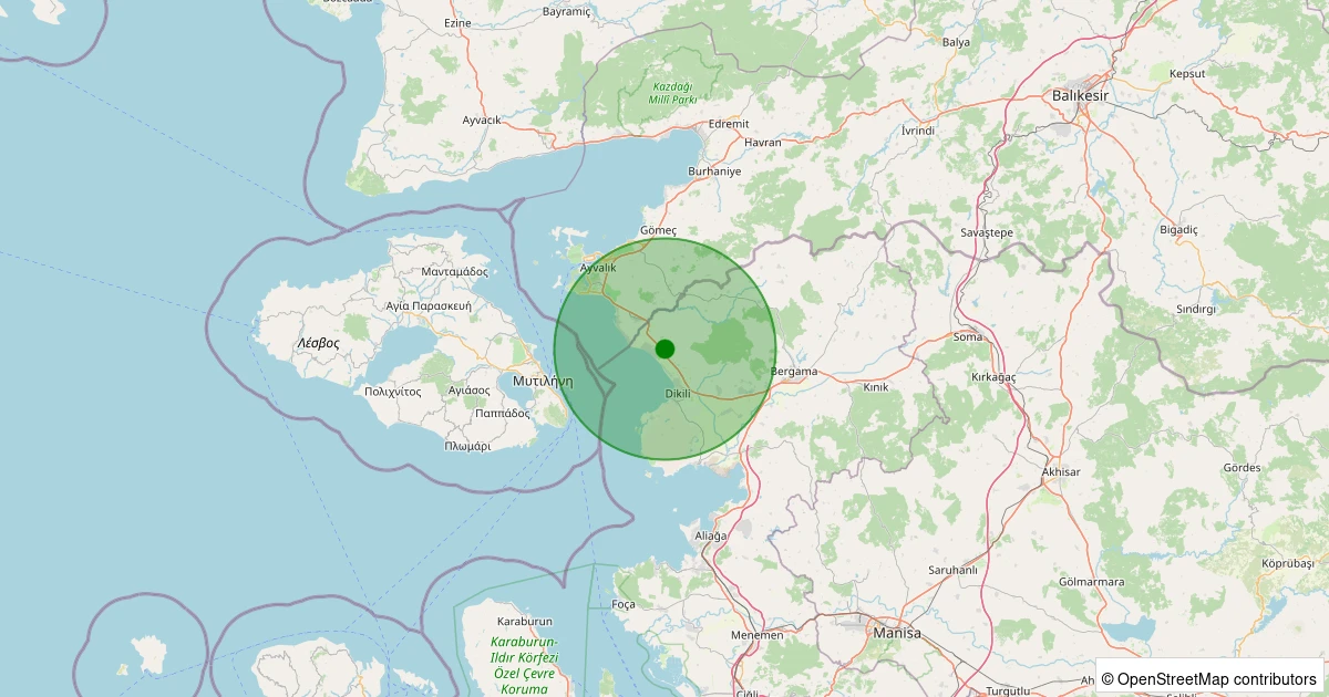 Son 7 gün içinde Dikili - Kıratlı noktasından 100 km yarıçap içerisinde meydana gelen diğer depremler: