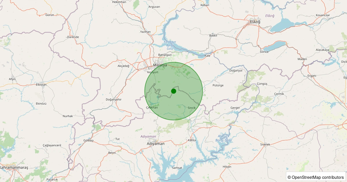Son 7 gün içinde Sincik - Aksu Köyü noktasından 100 km yarıçap içerisinde meydana gelen diğer depremler: