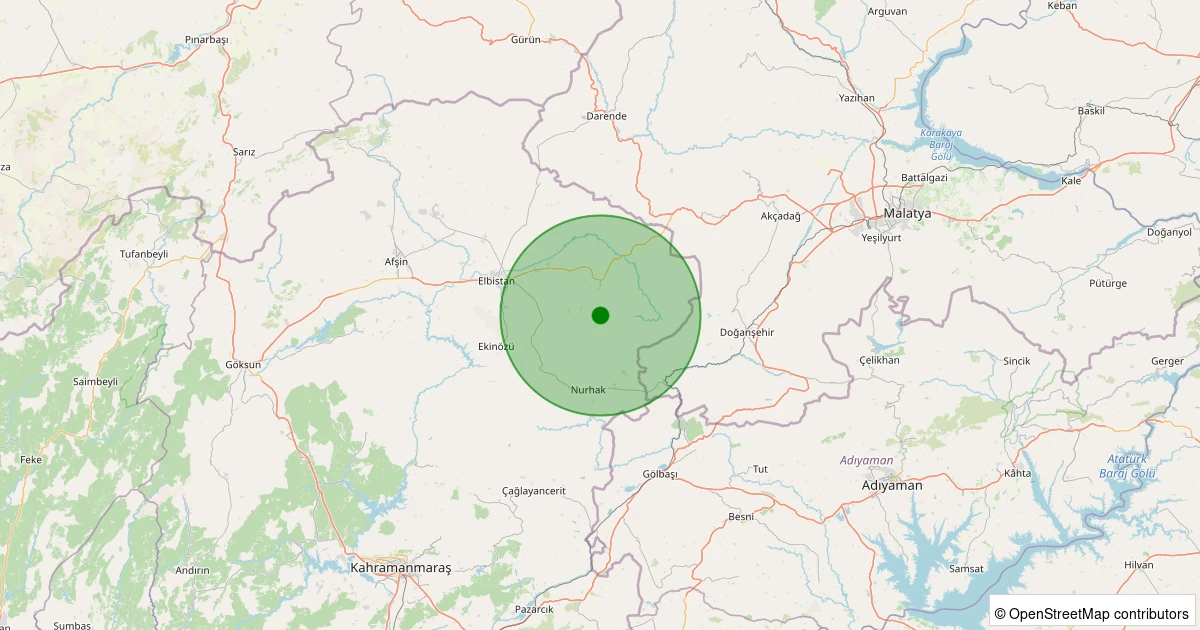 Son 7 gün içinde Elbistan - Sünnet Köyü noktasından 100 km yarıçap içerisinde meydana gelen diğer depremler:
