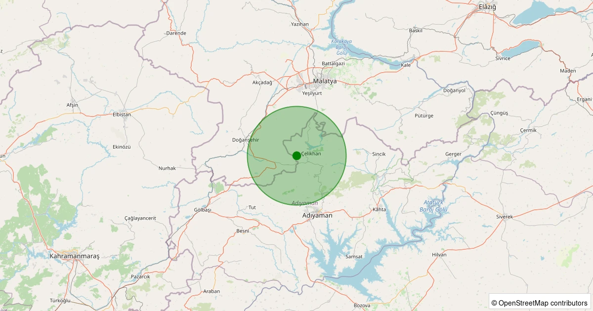 Son 7 gün içinde Çelikhan - Pınarbaşı/Kaya noktasından 100 km yarıçap içerisinde meydana gelen diğer depremler: