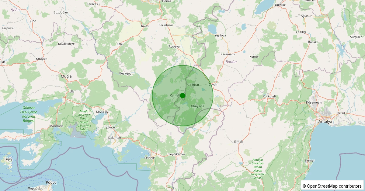 Son 7 gün içinde Çameli - Ayvacık noktasından 100 km yarıçap içerisinde meydana gelen diğer depremler: