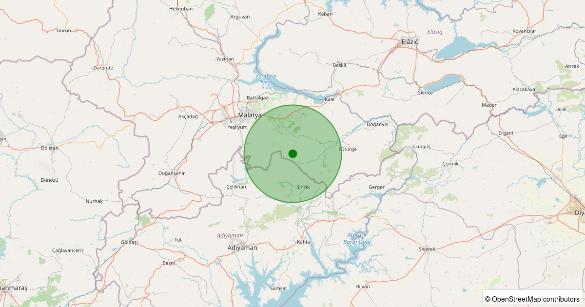 Son 7 gün içinde Battalgazi - Gülümuşağı Köyü noktasından 100 km yarıçap içerisinde meydana gelen diğer depremler: