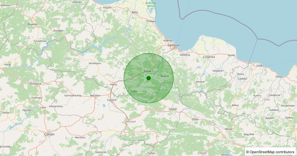 Son 7 gün içinde Kavak - Ilıca noktasından 100 km yarıçap içerisinde meydana gelen diğer depremler: