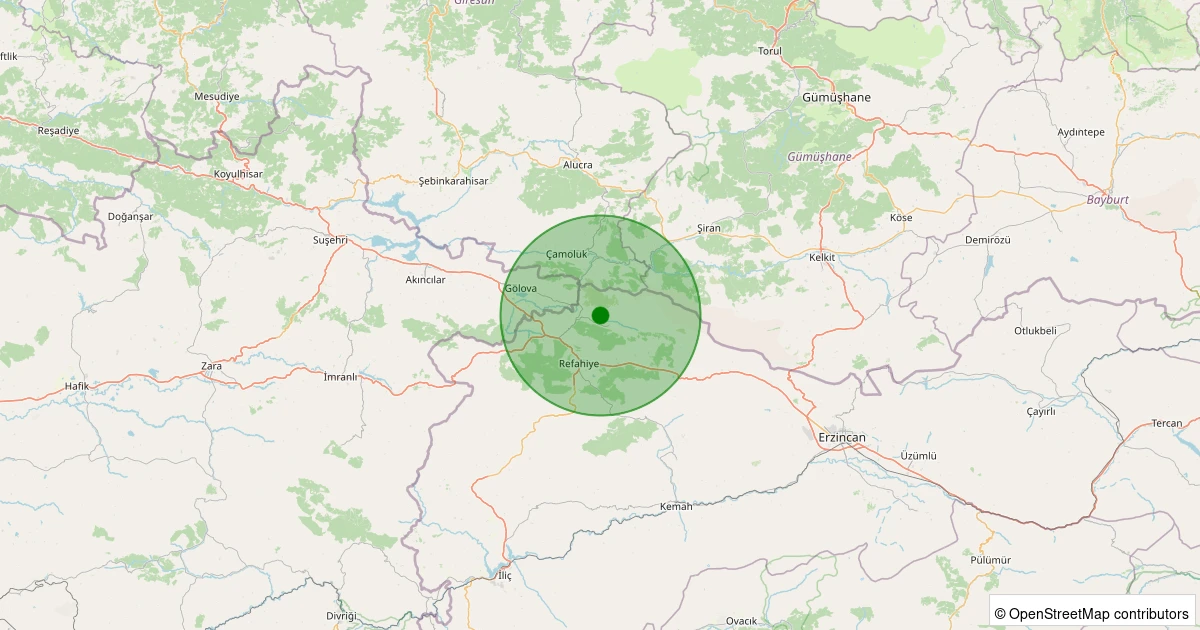 Son 7 gün içinde Refahiye - Alapınar Köyü noktasından 100 km yarıçap içerisinde meydana gelen diğer depremler: