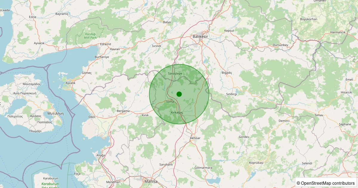 Son 7 gün içinde Soma - Evciler noktasından 100 km yarıçap içerisinde meydana gelen diğer depremler: