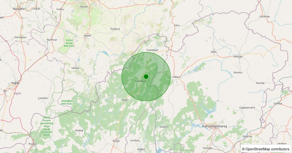 Son 7 gün içinde Saimbeyli - İslam noktasından 100 km yarıçap içerisinde meydana gelen diğer depremler: