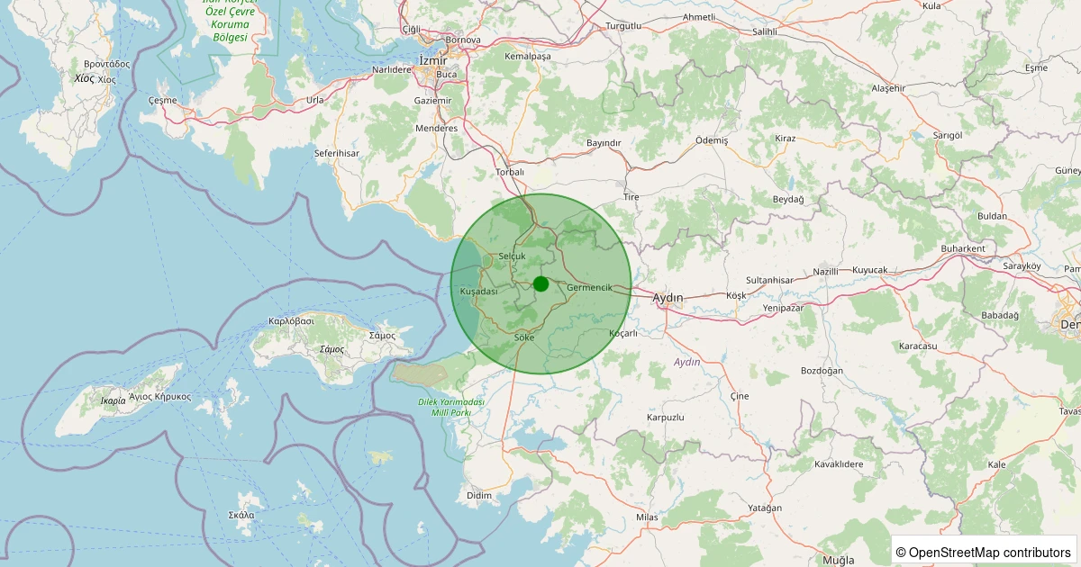 Son 7 gün içinde Germencik - Naipli noktasından 100 km yarıçap içerisinde meydana gelen diğer depremler: