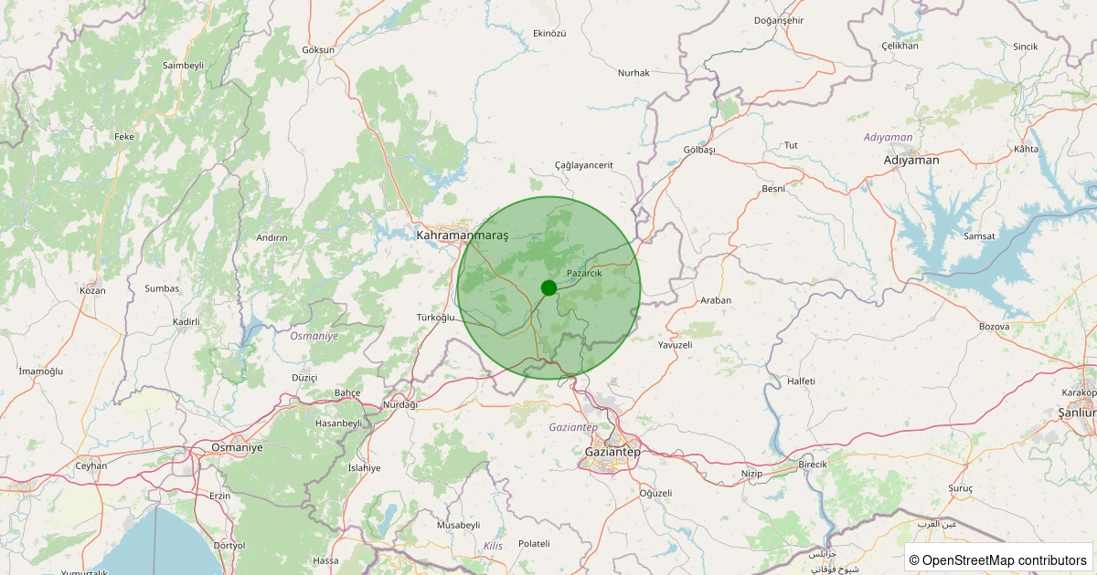 Son 7 gün içinde Pazarcık - Bölükçam noktasından 100 km yarıçap içerisinde meydana gelen diğer depremler: