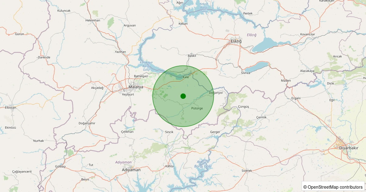 Son 7 gün içinde Pütürge - Pazarcık Köyü noktasından 100 km yarıçap içerisinde meydana gelen diğer depremler: