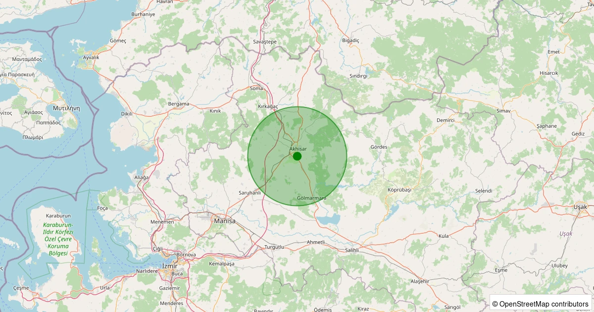 Son 7 gün içinde Akhisar - Beyoba Köyü noktasından 100 km yarıçap içerisinde meydana gelen diğer depremler: