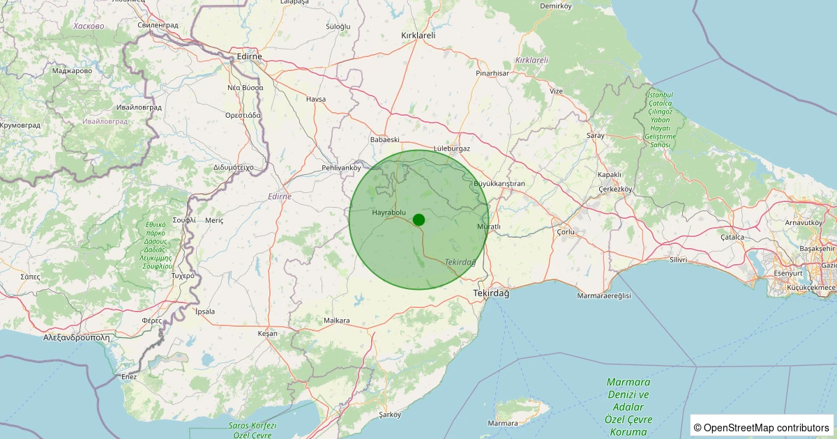 Son 7 gün içinde Hayrabolu - Çene noktasından 100 km yarıçap içerisinde meydana gelen diğer depremler: