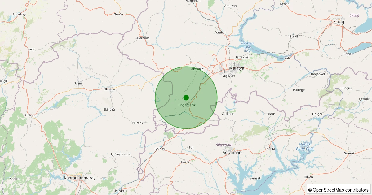 Son 7 gün içinde Doğanşehir - Yolkoru noktasından 100 km yarıçap içerisinde meydana gelen diğer depremler: