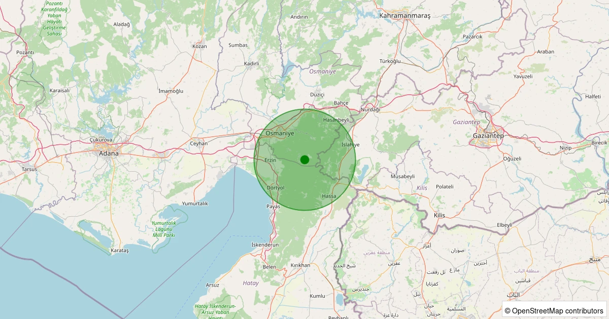 Son bir hafta içerisinde Osmaniye şehri Merkez - Küllü Köyü noktasından 100 km yarıçap içerisinde toplamda 78 deprem kaydedilmiştir. Bu depremlerden en büyüğü 3.3 büyüklüğünde ve en sığ odaklısı 1.10 kilometre derinlikte gerçekleşmiştir.