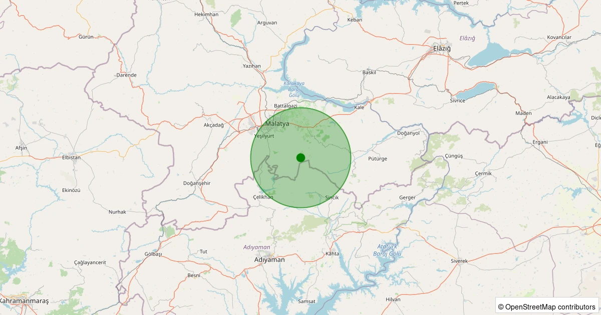 Son 7 gün içinde Battalgazi - Uluköy Köyü noktasından 100 km yarıçap içerisinde meydana gelen diğer depremler: