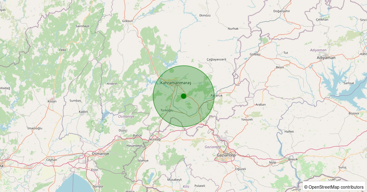 Son 7 gün içinde Dulkadiroğlu noktasından 100 km yarıçap içerisinde meydana gelen diğer depremler: