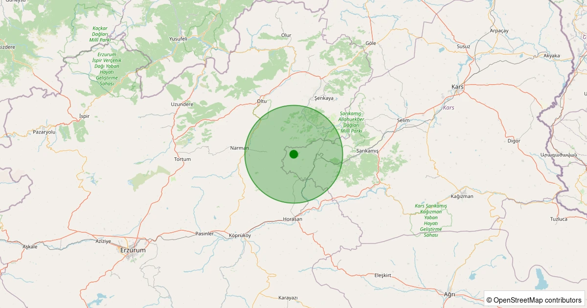 Son 7 gün içinde Sarıkamış - Parmakdere Köyü noktasından 100 km yarıçap içerisinde meydana gelen diğer depremler: