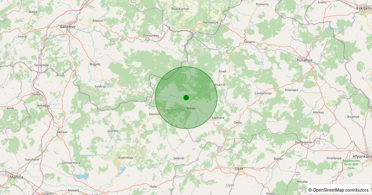 Son 7 gün içinde Simav - Naşa/Cumhuriyet noktasından 100 km yarıçap içerisinde meydana gelen diğer depremler: