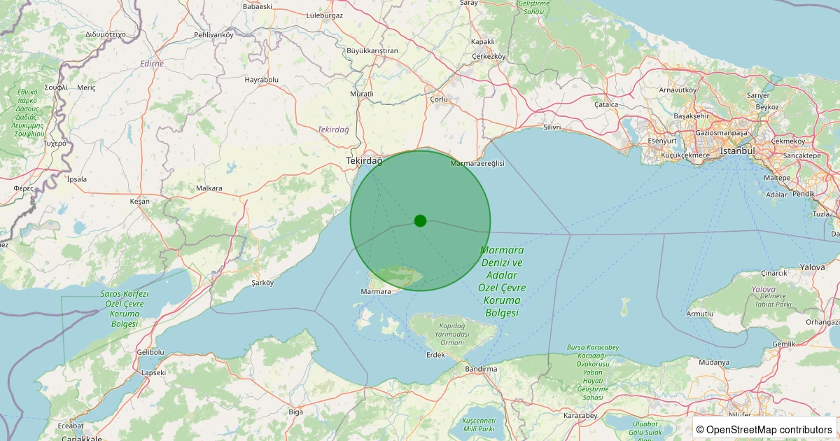 Son bir hafta içerisinde Marmara Denizi - [17.09 km] Marmara (Balıkesir) noktasından 100 km yarıçap içerisinde toplamda 46 deprem kaydedilmiştir. Bu depremlerden en büyüğü 3.1 büyüklüğünde ve en sığ odaklısı 3.50 kilometre derinlikte gerçekleşmiştir.