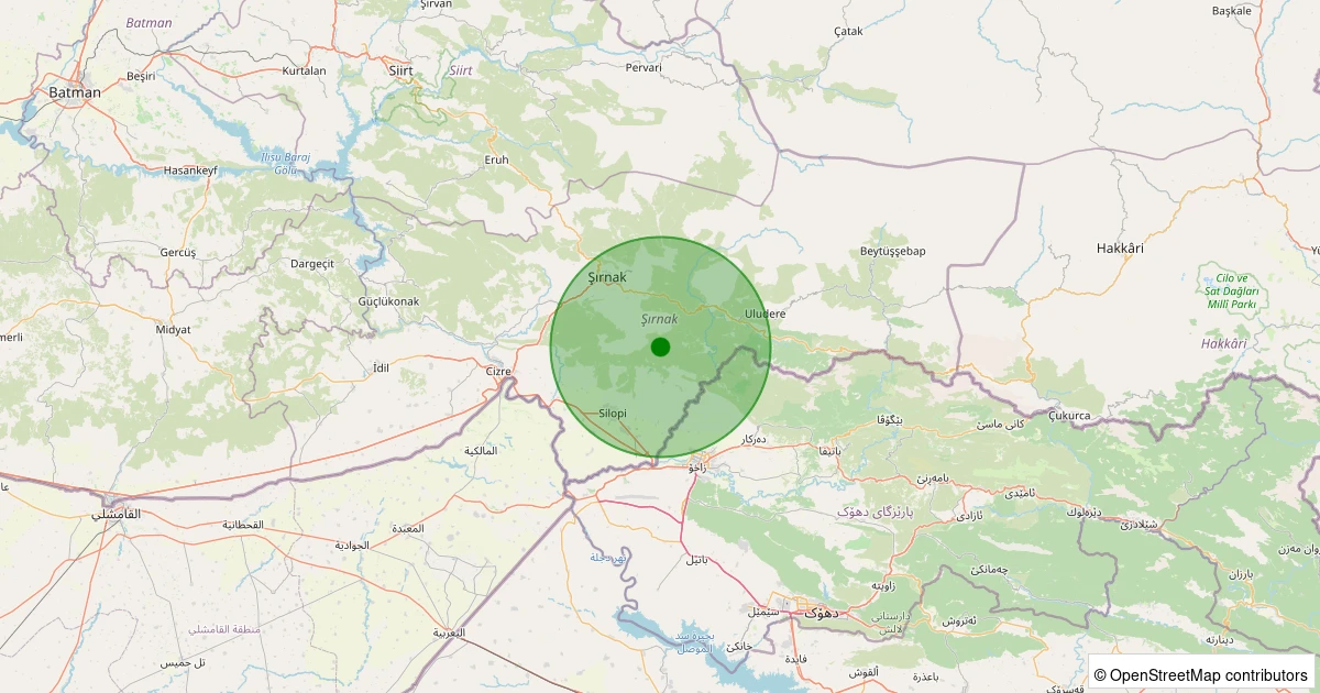 Son 7 gün içinde Silopi - Görümlü Köyü noktasından 100 km yarıçap içerisinde meydana gelen diğer depremler: