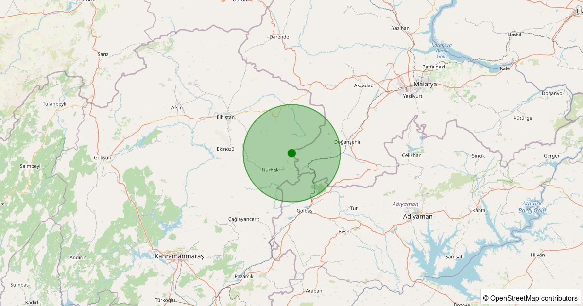 Son 7 gün içinde Nurhak - K.Tatlar Pınarbaşı noktasından 100 km yarıçap içerisinde meydana gelen diğer depremler:
