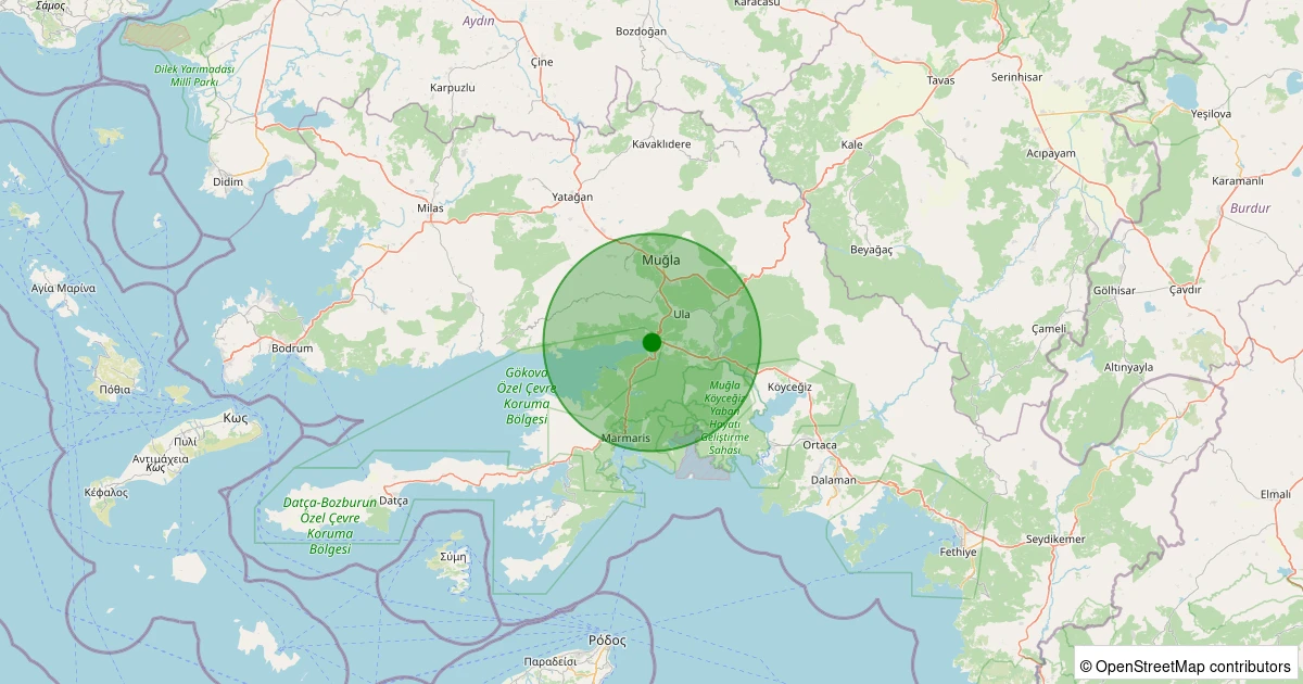 Son 7 gün içinde Ula - Akyaka noktasından 100 km yarıçap içerisinde meydana gelen diğer depremler: