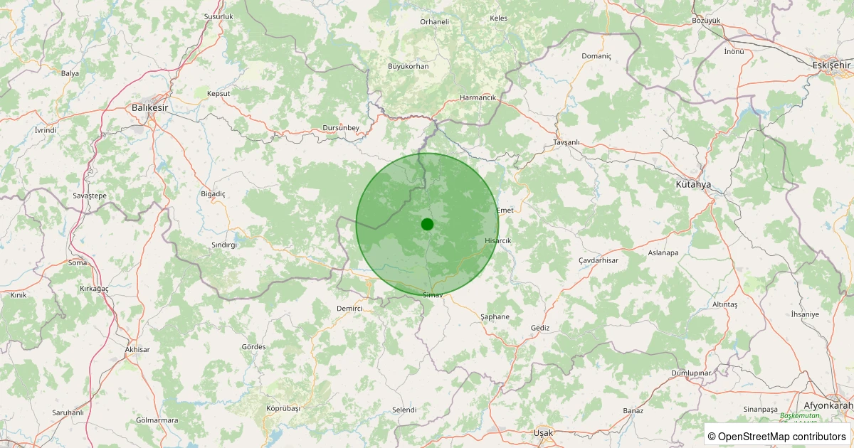 Son 7 gün içinde Simav - Yavı Köyü noktasından 100 km yarıçap içerisinde meydana gelen diğer depremler:
