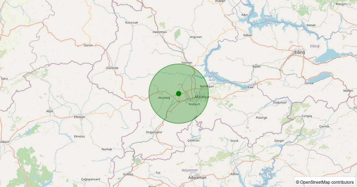 Son 7 gün içinde Yeşilyurt - Kuyulu noktasından 100 km yarıçap içerisinde meydana gelen diğer depremler:
